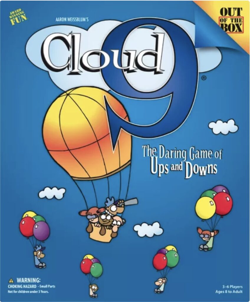 Cette année, Aaron Weissblum sort Cloud 9, un jeu pour 3 à 6 joueurs, basé sur un principe de stop ou encore. A chaque tour, il faut choisir si l’on reste à bord d’un navire qui vogue dans les nuages. Ou si l’on descend. Choisir de descendre, c’est la garantie de marquer quelques points. Tandis que rester à bord, c’est tenter de se rapprocher beaucoup plus vitre de la victoire, au risque de tout perdre.
